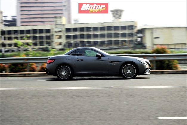 What’s it like to drive? The SLC 43 is a different flavour completely from the class leader which is the Boxster/Cayman. The ride is stiff and a bit too aggressive even in comfort, but show it a nice smooth road and the little beast emerges. Sport and Sport Plus modes reveals a bonafide micro muscle car with 362 bhp propelling you to a pretty respectable 4.6 sec to 100 kmph. Grip and torque are available in treacly gobfuls and you’ll need a pretty fast race track to unstick it. However, it’s quite possible, as you can turn off traction control and let the LSD handle the 398lbft or torque through some fat rear tyres to give you some tail out delights. That torque is part of the hilarity as the 9 speed box easily helps find the right gear for massive in gear acceleration when needed. It’s definitely not in the league of a super sharp Boxster helm with much more inert steering feel through the slightly too thick steering wheel and very stiff suspension. However, it provides delightful old school, rear wheel drive hooligan appeal through that characterful engine that loves to rev… and that’s something you won’t expect in something as pretty as this little thing.