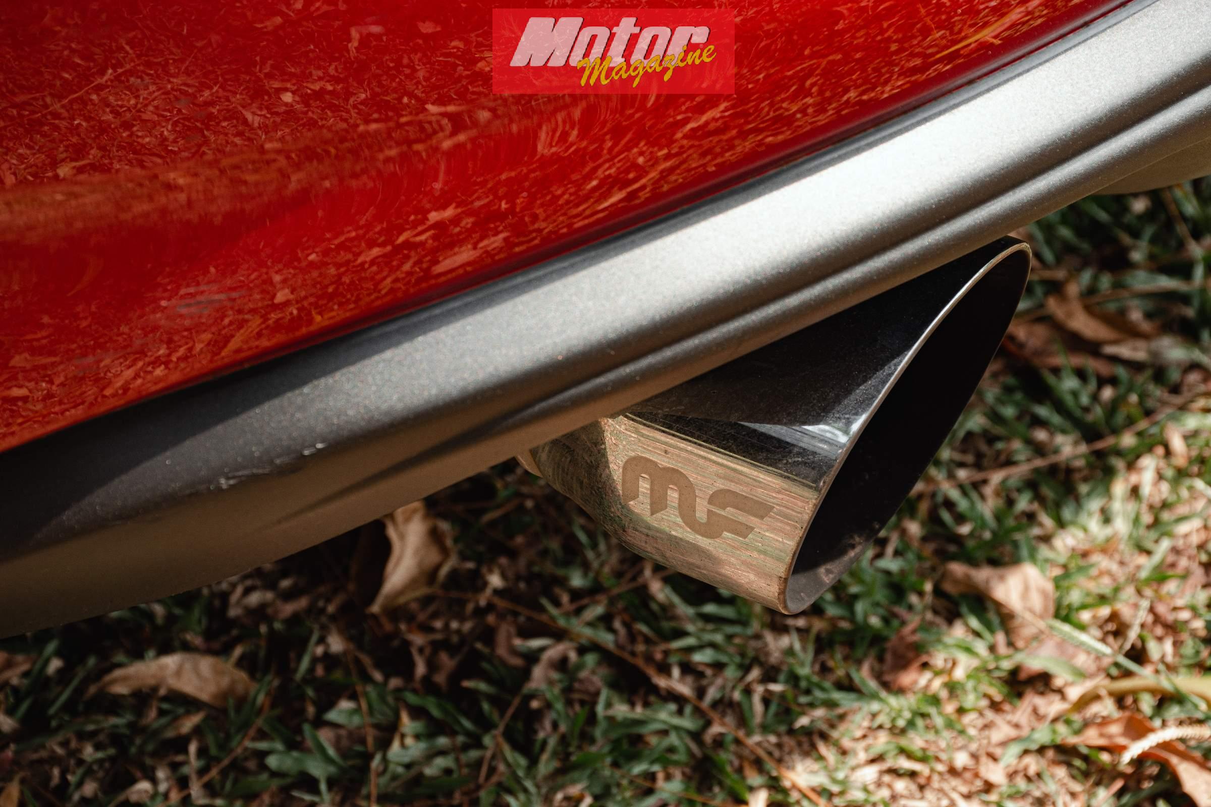 Mahen estimates the zero-to-hundred time has dropped into the low sixes and I’m inclined to agree. Neither of us thought to time it – we were having too much fun – so let’s go by seat-of-the-pants figures. The top speed pre-tuning was rated at 215km/h, post- tuning I’m sure it can touch 240km/h if opened up on a long enough stretch of tarmac, but it would be irresponsible to attempt this on public roads.