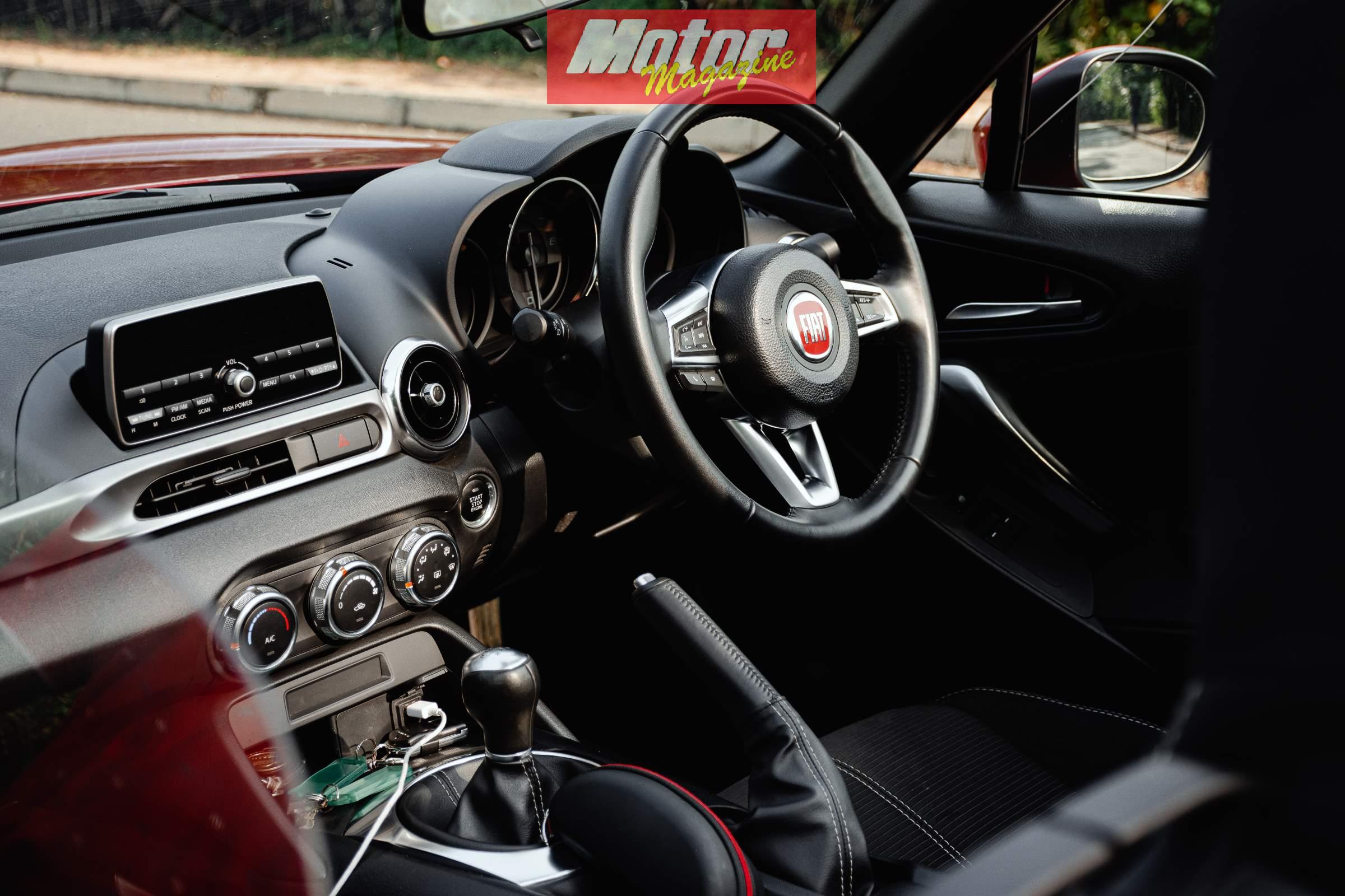 Whilst the exterior is suitably differentiated from the taut MX-5 with longer and more flowing lines, the interior is almost a carbon copy of the Miata. The Fiat badge and the different font on the instruments are the major differentiator. Once again, this is no bad thing as the Japanese are known for bulletproof interiors, especially under our scorching sun conditions.